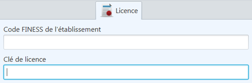 L’onglet ‘Licence’ permet le paramétrage de la Clé de licence du Code FINESS. Une fois le Code FINESS et la Clé de Licence saisis, l’utilisateur doit cliquer sur le bouton ‘Tester la licence’ afin de permettre au module de vérification des licences de valider et d’autoriser l’accès.