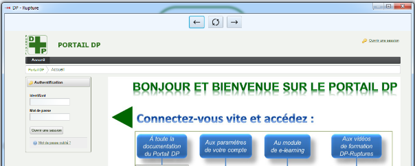 Le menu ‘Outils’ / ‘Service DP’ / ‘DP - Rupture’ permet d’accéder au site dédié au site de gestion des Ruptures.